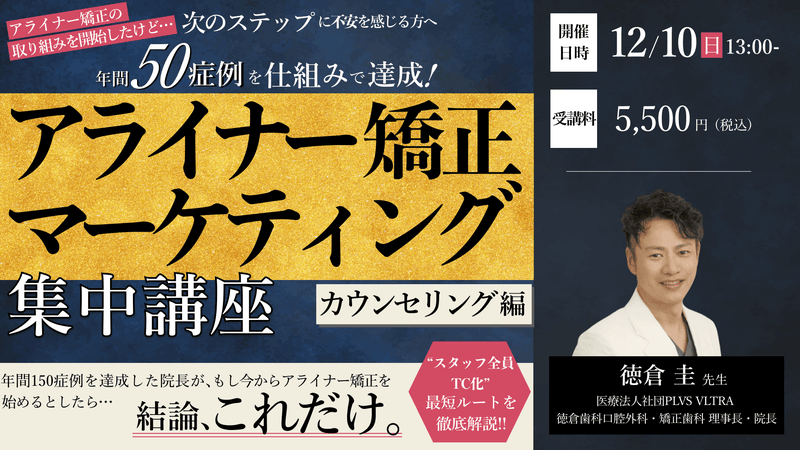 【ウェビナー】アライナー矯正マーケティング集中講座 集患編