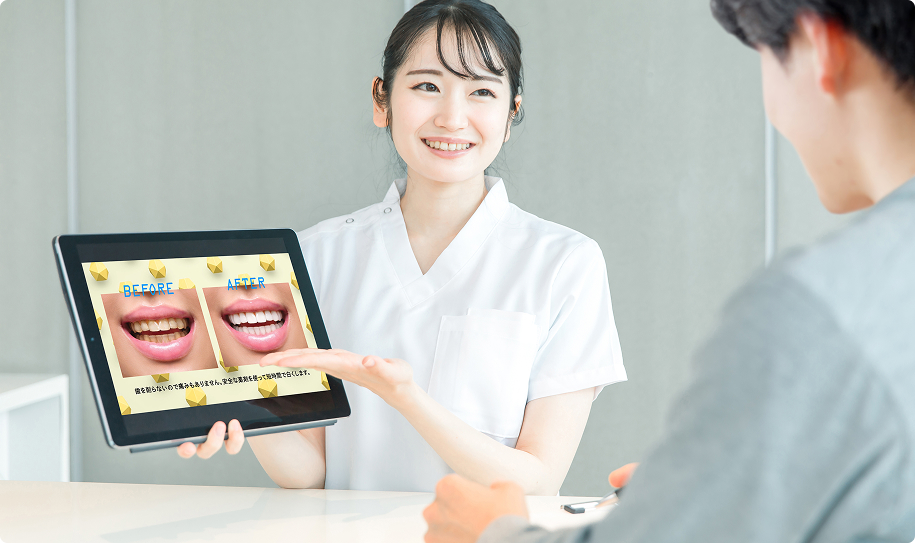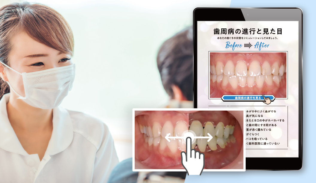 症例写真やポップアップ機能など、リアルなシミュレーションで患者の驚きと共感を得ることができます。