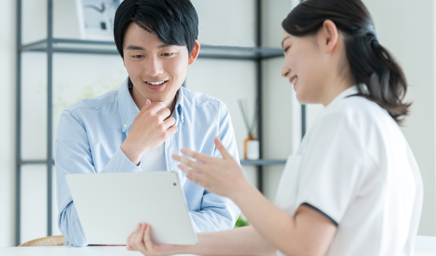 多彩なビジュアルを使用した資料やトレーニング機能により、誰でも一定レベルのカウンセリングが可能に。属人性の解消につながります。