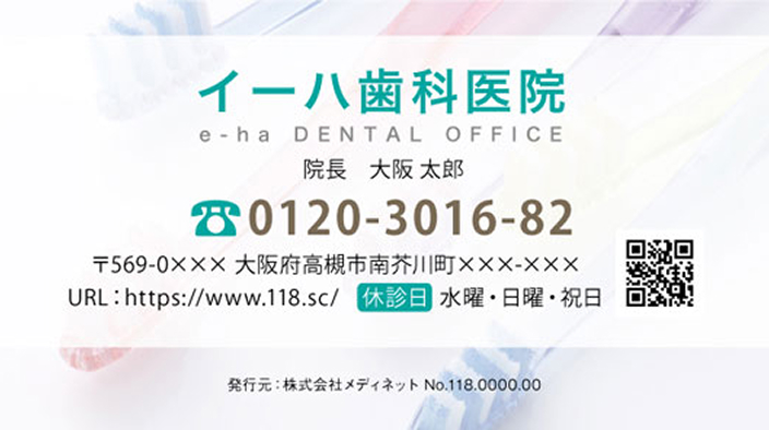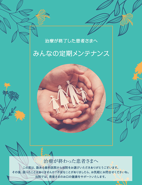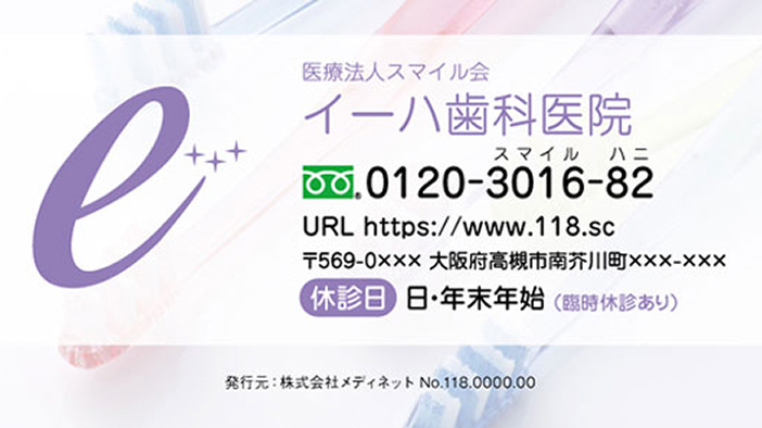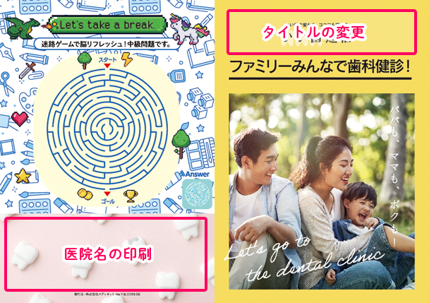 裏面に医院名を印刷できるほか、タイトル部分もあなたの医院のオリジナルにすることができます。