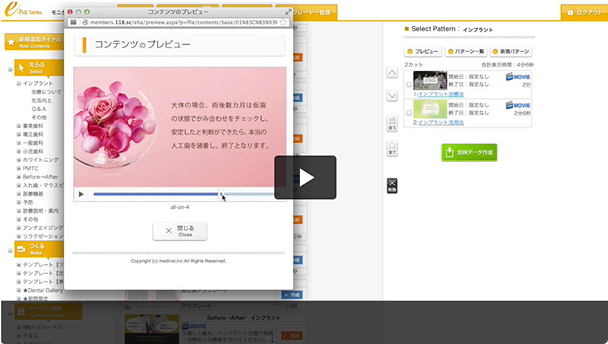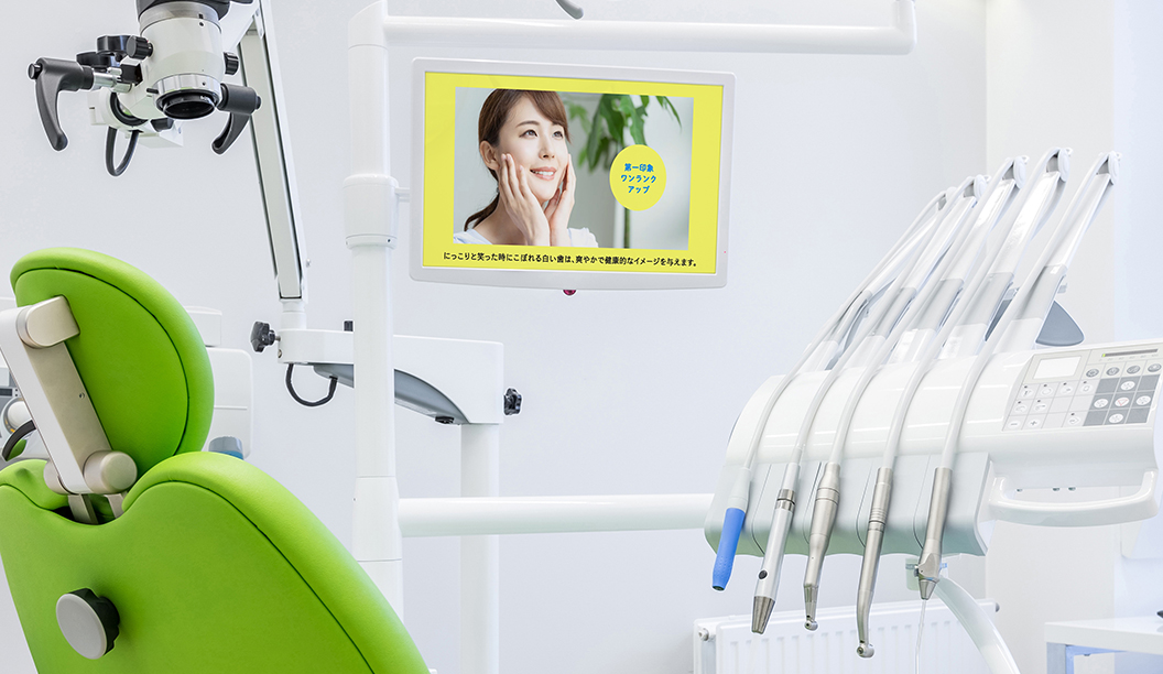 e-haSaver(イーハセイバー)は、診療ユニットのモニターで、医院さまの診療の特徴やこれから行う治療の事前説明を美しい動画で見せるデジタルサイネージサービスです。