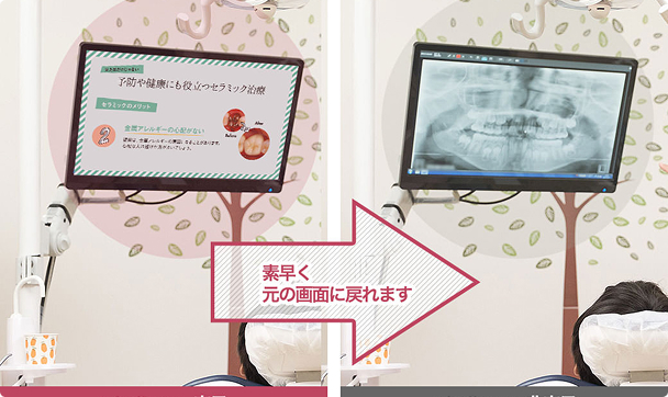 素早い画面復帰と併せて使うことでスムーズな治療の流れを実現します。