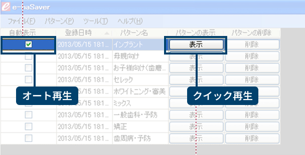 特定のタイミングで患者に番組を見せたいときは、ユニットサイドで番組を選択して、すぐ再生できるクイック再生もご用意。
